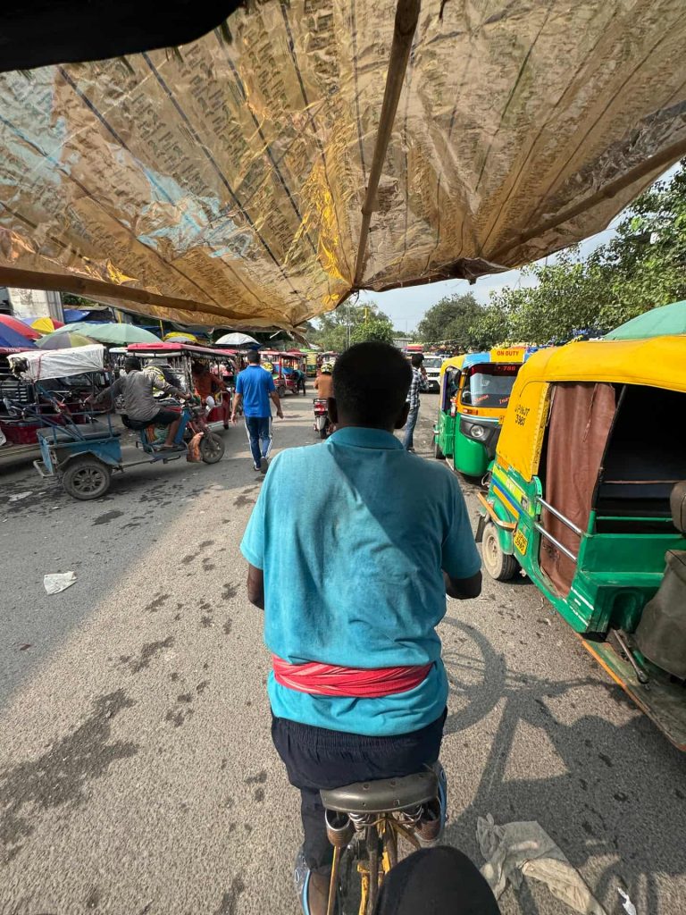 Next stop: the Red Fort. Built in the 17th century by Mughal emperor Shah Jahan, this UNESCO World Heritage site later became a symbol of India’s independence — it’s where the Prime Minister still raises the flag every Independence Day (UNESCO). Getting there, of course, involved the usual rikshaw haggling. Pro tip: if you’re quoted anything over 100 rupees, you’re getting fleeced. Walk away and watch them chase you down with a “special discount.”