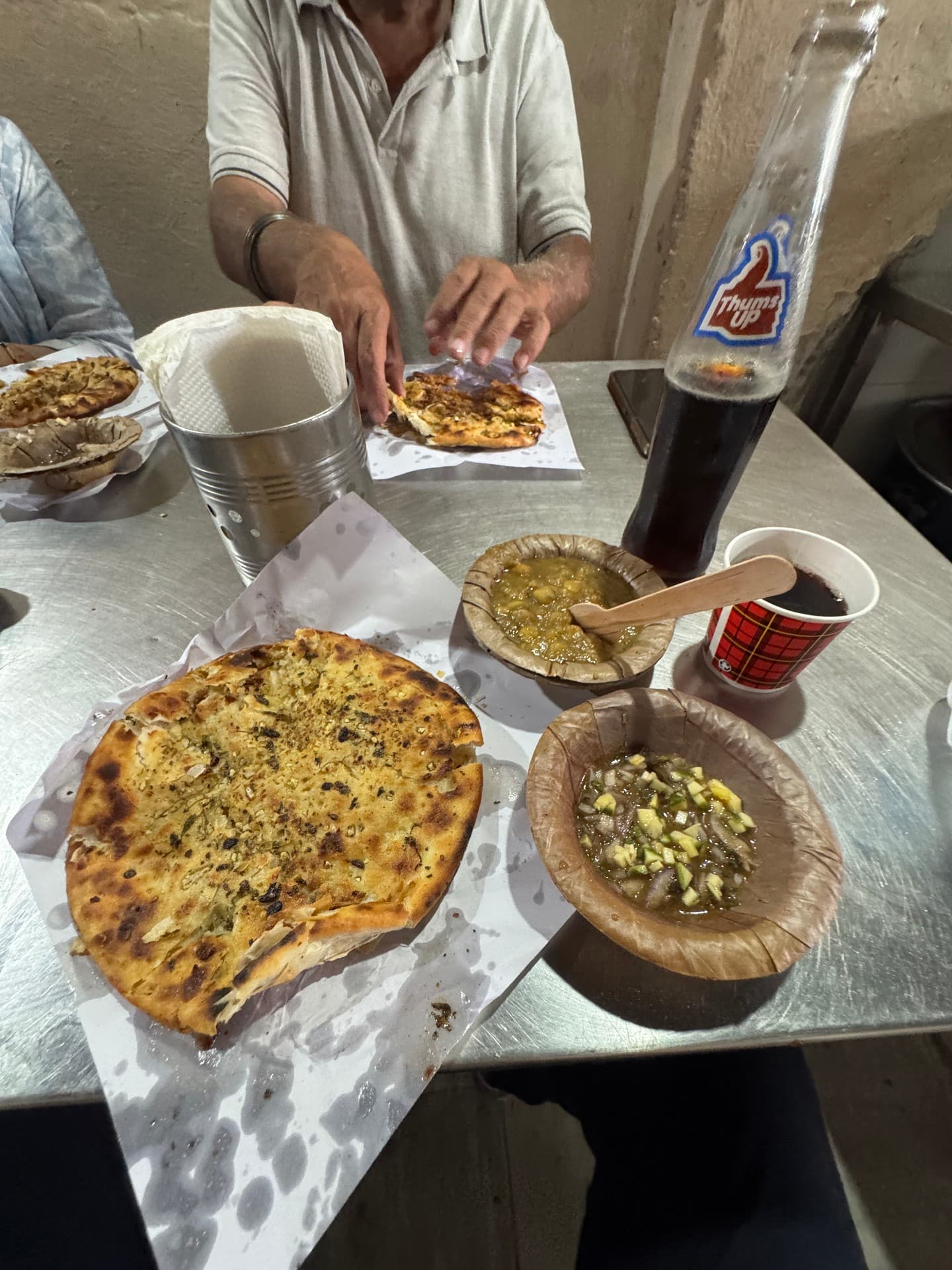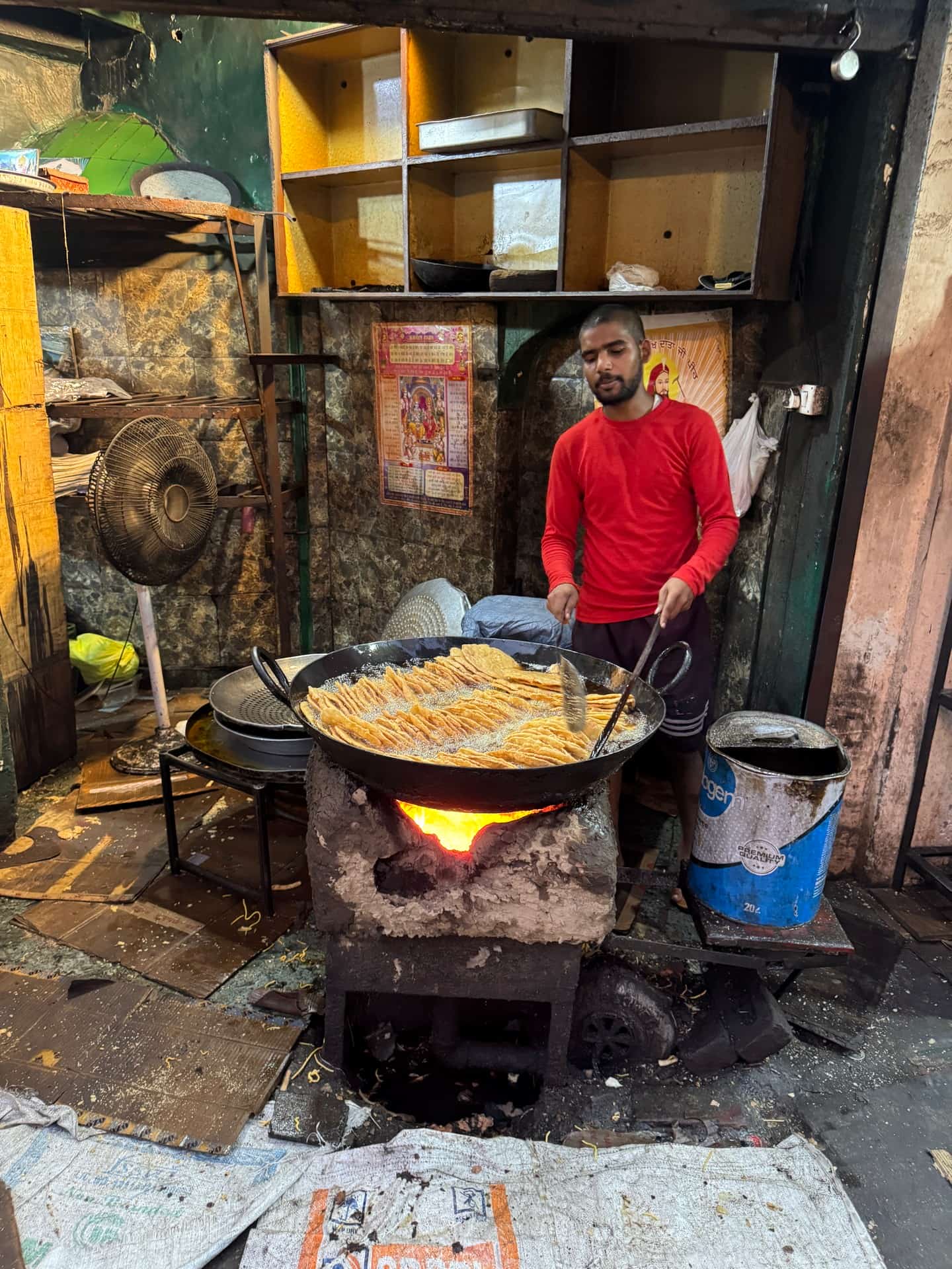 Let’s be honest: food and water in India can be a gamble. But one spot I can recommend is Prem Nath, the local go-to. Forget menus — they only serve Kulcha, a fried chapati stuffed with onion and spices. Greasy, golden, and unreal. If you can survive the oil bath, you’ll want seconds.