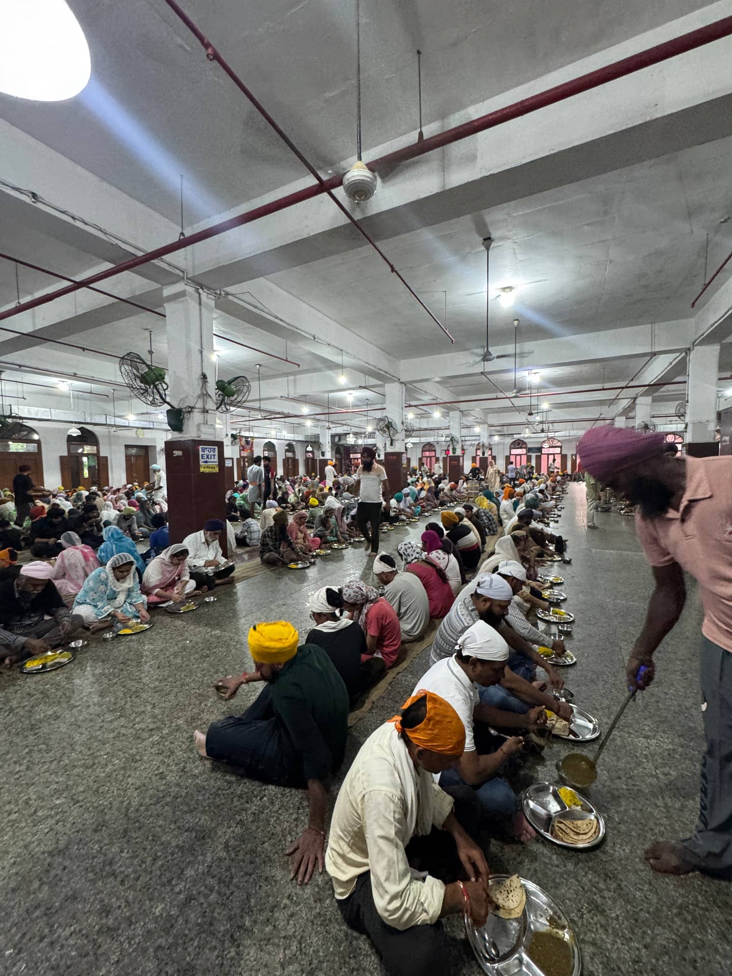 The langar here feeds up to 100,000 people daily. Volunteers do everything: cooking, serving, cleaning. Groups of 500 sit together for 15 minutes before making way for the next. No one goes hungry. Even leftovers are given a new purpose — bread is crumbled for birds, and scraps become compost. This gives you an idea how many Sikhs have such a kind and genuine nature.
