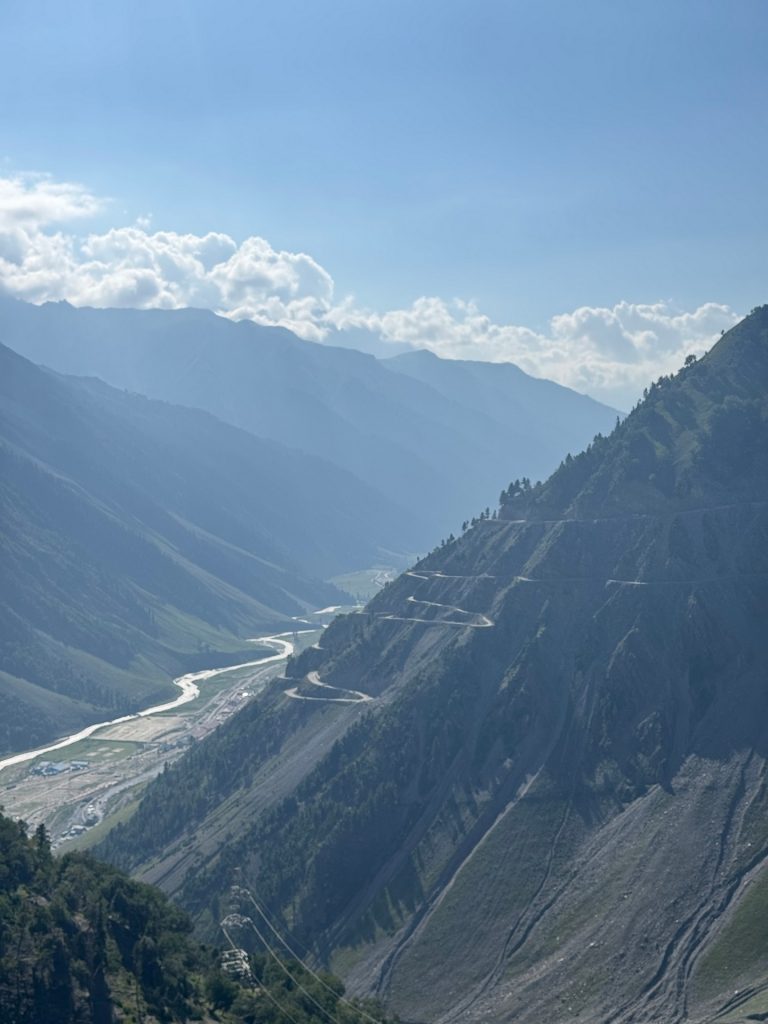 The road was dotted with tea stalls and roadside dhabas — perfect excuses to stop, sip chai, and chat with locals. Soon, I climbed into the Zojila Pass (11,575 ft), a twisting maze of hairpins leading to jaw-dropping views of the valley below. These roads were sketchy enough but it was only when I seen the original pass that I knew how lucky I was to be driving in 2025.