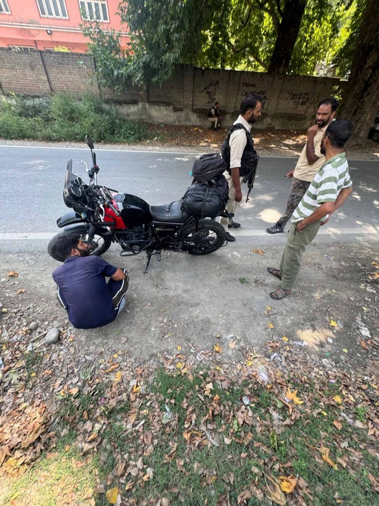 Forty-five minutes in, the bike broke down outside an army base. Typical. But this being Kashmir, soldiers immediately gathered round, tried to fix it, and when they couldn’t, called the rental company and demanded a new one. You’ve got to love the military here.