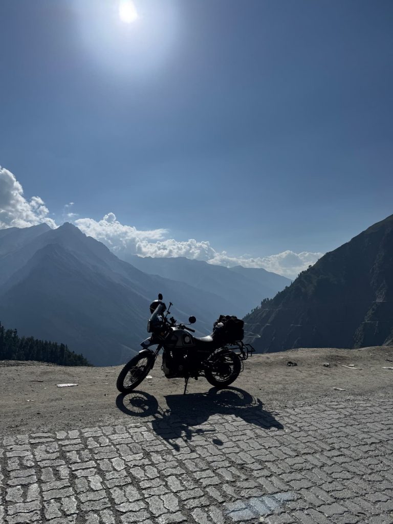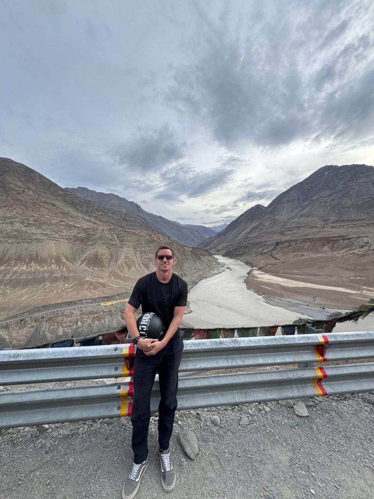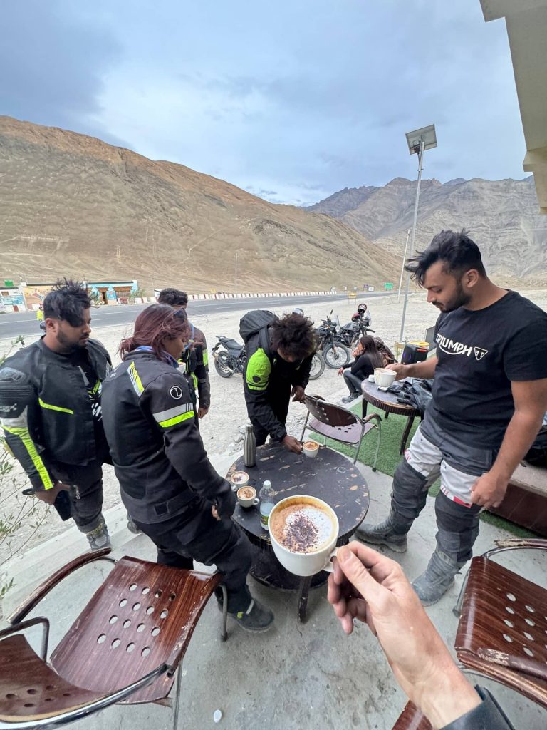 From here the road followed the mighty Indus River, the very river that gave India its name. Other bikers joined along the way, some from as far as Calcutta — weeks on the road. Together we stopped for chai not far from the Siachen Glacier, the world’s highest battlefield, where soldiers still endure temperatures of –60°C. Thousands have died here, many not from bullets but from the sheer brutality of altitude and cold.